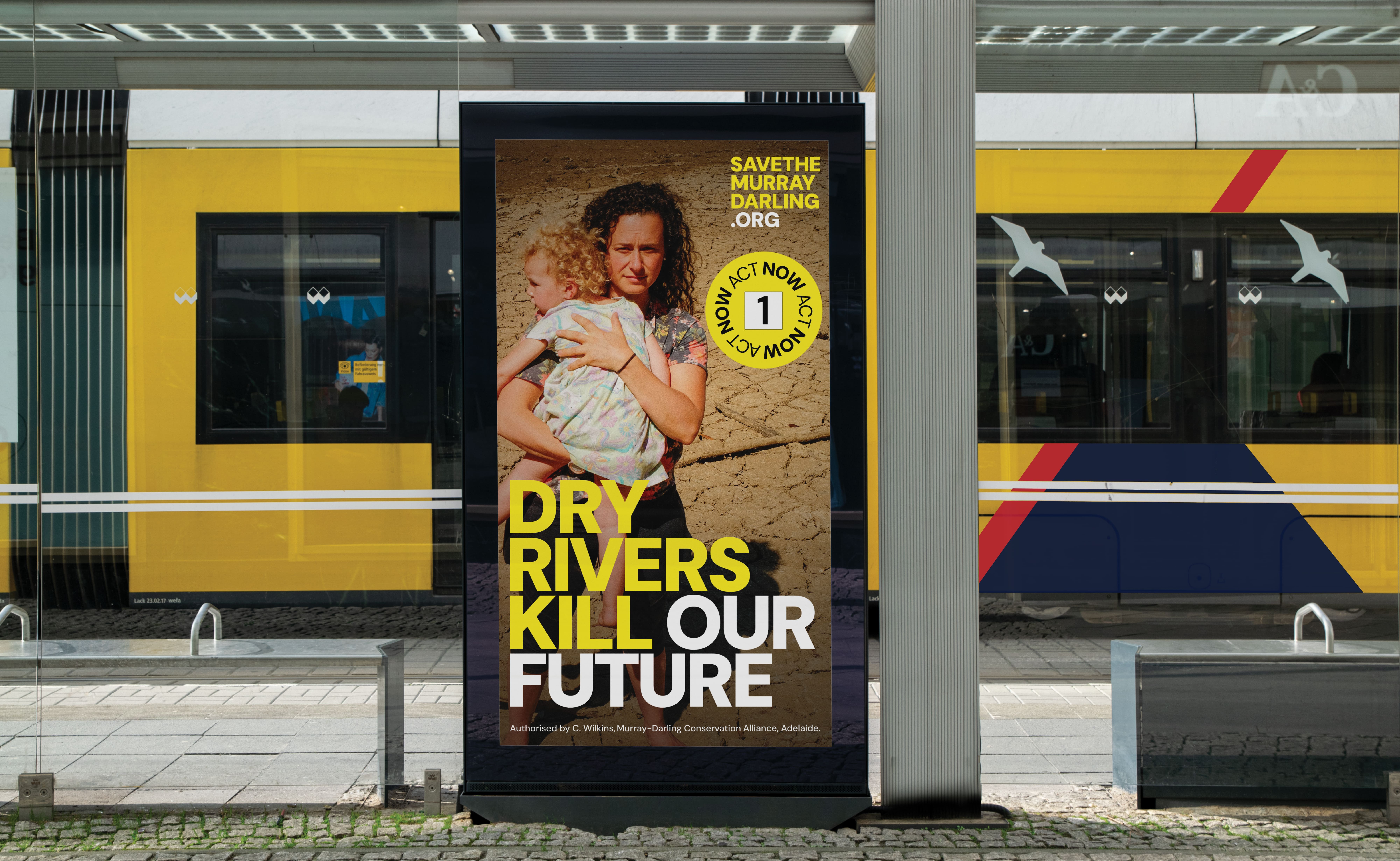 When the River Murray suffers, so does South Australia. Dry Rivers Kill was a two-phase campaign designed to jolt public awareness and stimulate action regarding the plight of the Murray.Powerful, succinct, and uniform messaging, with a high-impact colourway, was created to reinforce the consequences of a depleted Murray River system. This assisted to personalise the message while complementing the two-phase campaign strategy.The result was a massive spike in engagement, broad community recognition, and political pressure in the lead-up to the election. Dry Rivers Kill shifted public sentiment from curiosity to accountability, proving that simple, bold outdoor campaigns can create real impact.